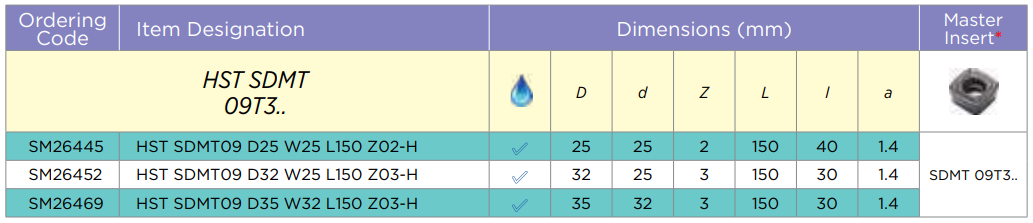 Frez składany Ø25 HST SDMT09 D25 W25 L150 Z02-H SMOXH SM26445